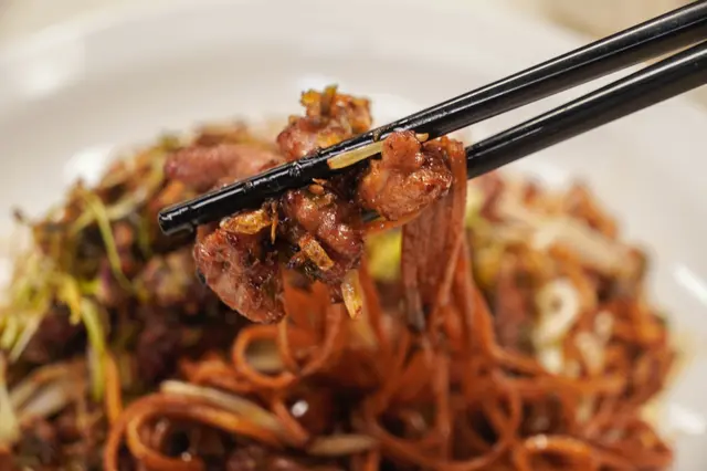 伊麵將醬汁的精華全吸收,再加上一堆配菜令口感更有層次。