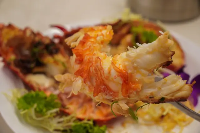 香煎花龍蝦 (12兩) 將一隻開邊來煎,沒有加芝士更能吃到龍蝦的原味。