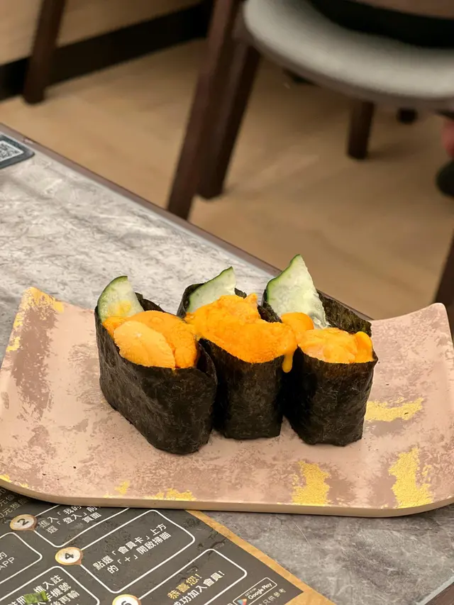 有帆立貝、赤蝦、仲有較少見既藍鰭吞拿同象拔蚌。吞拿魚油份充足,入口即溶。象拔蚌肉質爽口味道鮮甜