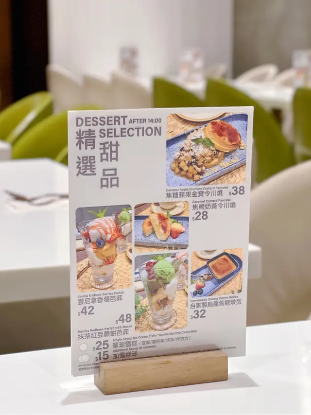 外脆內軟的今川燒,有一層香脆的焦糖甜中回甘,入口鬆軟流出香濃的奶黃餡料,可蘸上朱古力醬及鮮忌廉,還有香甜的士多啤梨平衡膩感。