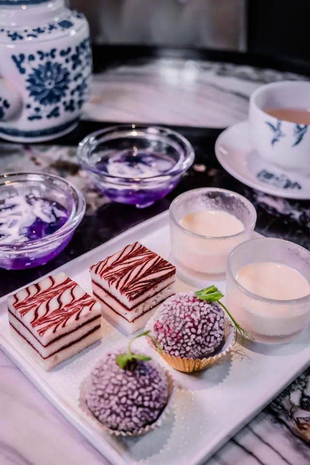 甜點質素令人眼前一亮!大推奶皇流心加脆脆皮的流心紫薯球,吃時要小心被熱到。茉莉花茶凍也超讚,茉莉茶味十足!
