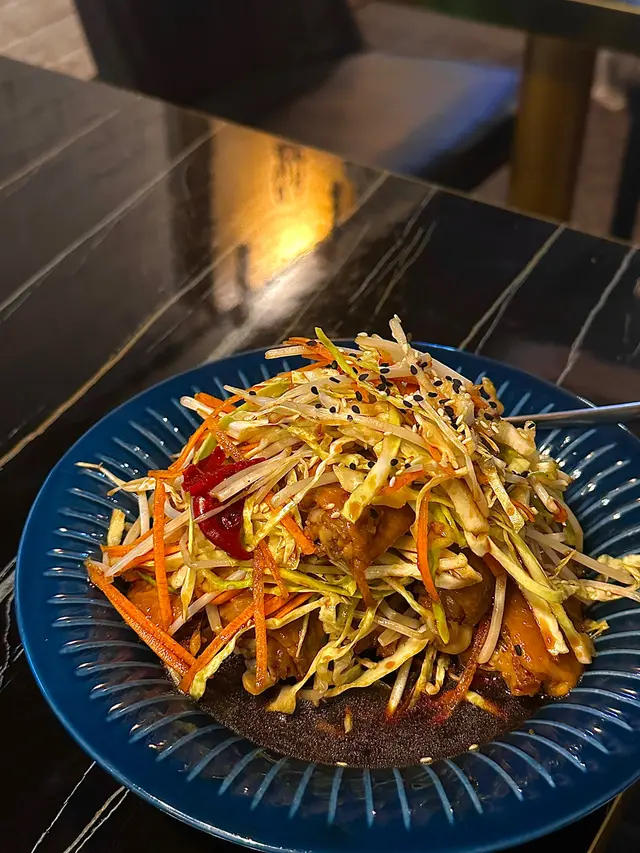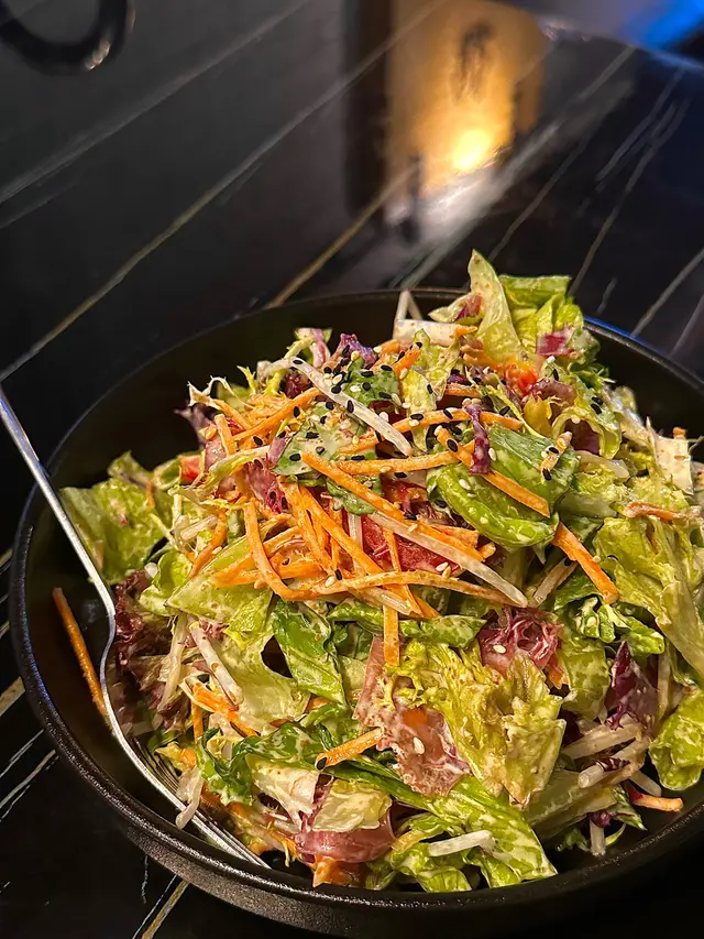 竟然把海藻可以這樣做,也是很神奇,一開始我們吃不出來哪一個是海藻,後來問了店家才知道是那個跟紫甘藍長得類似的東西,吃起來口感弹弹的,配上沙拉酱很赞