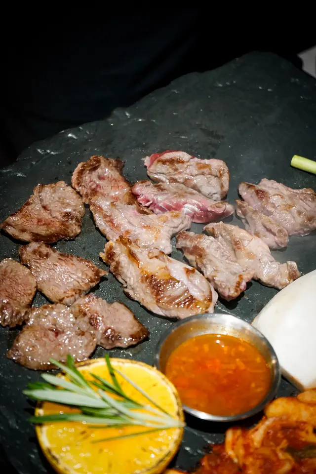 中環新開韓式燒肉店 francisg712345Level 42025-09-1483 views Follow 今晚同班friend去咗中環呢間新開嘅韓式燒肉店「The Jeju Black」試水溫~裝修走黑金工業風,幾有型格!✨ 牛肉套餐 $658牛肋骨肉 200g 和 牛板腱肉 100g▪️ 牛肋骨肉(200g)— 油脂花紋靚到震!🔥 燒到外層微焦脆口,內裡肉汁爆棚,入口即化嘅口感真係無得輸~蘸少少鹽已經帶出濃郁牛香,食肉獸必點! ▪️ 牛板腱肉(100g)— 肉質偏瘦但唔韌!👏 切得薄身,快熟得來保留嚼勁,啱晒鍾意啖啖肉又怕肥嘅朋友~簡單用韓式醬汁醃過,燒完惹味到停唔到口! 蔬菜(生菜、紫蘇葉等)包住肉+蒜片+韓式醬食,瞬間解膩又提升層次~! 另外套餐可以選擇炒飯或者韓式炸醬麵。The above review is the personal opinion of a user which does not represent OpenRice's point of view.LikeShare中環新開韓式燒肉店 The Jeju Black https://s.openrice.com/QrKT0ypAl00Report Post Ratings5Taste4Decor5Service5Hygiene5ValueDining MethodDine In