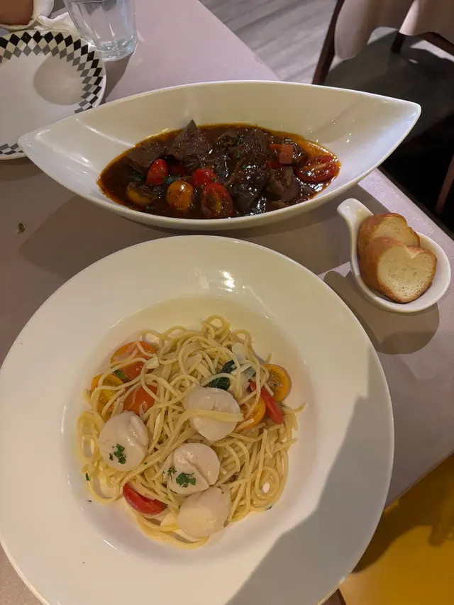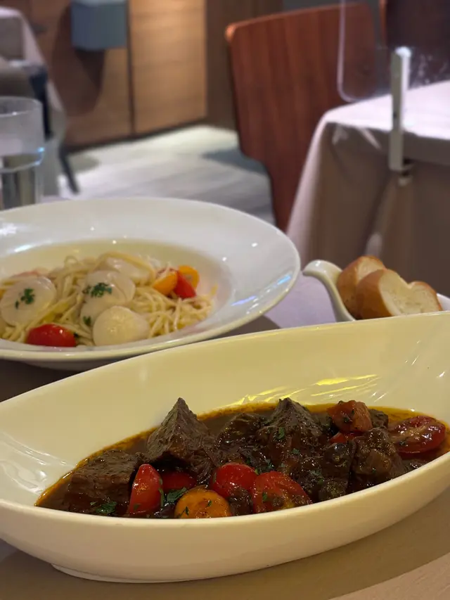 牛面肉非常軟嫩,唔會話好乾柴但又好入味,所以烹調既時間真係岩岩好。牛面肉肉味亦好濃郁。鍾意食牛既朋友真係唔可以錯過。而個紅酒汁既調味亦好開胃,個法包點下d紅酒汁連埋舊牛肉食真係回味無窮。