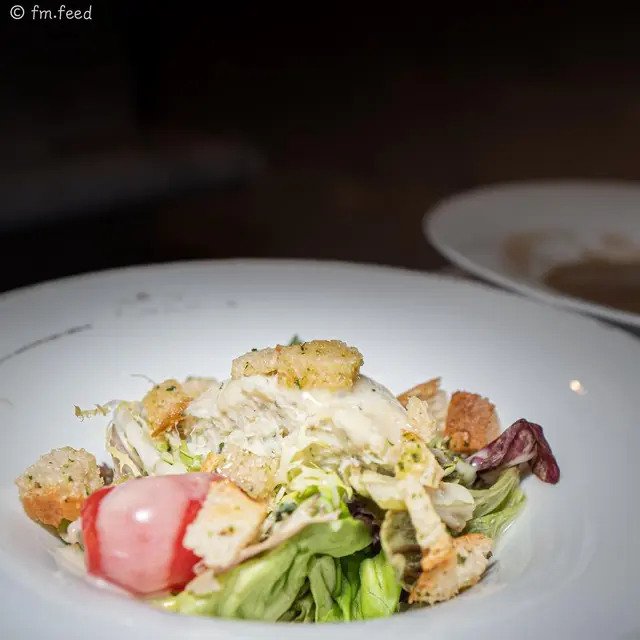 叫咗兩個午市套餐,一個係青口配意大利闊條麵,另一個係法式豬肉。跟餐都可揀魚白蘭地沙律或奶油蘑菇湯,甜品就叫咗藍莓芝士蛋糕同士多啤梨千層酥。