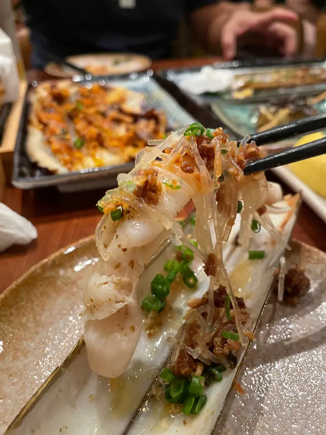 我自己最鍾意蒜蓉欖角燒蟶子、蒜蓉菜脯燒茄子、鹽燒和牛牛小排同山椒鰻魚汁燒白鱔。蒜蓉欖角、蒜蓉菜脯辣醬燒嘅燒物係勁惹味,又增加到口感。牛小排肉味香油脂味濃。白鱔又滑又香又無魚腥味。呢堆野絕對係必食。