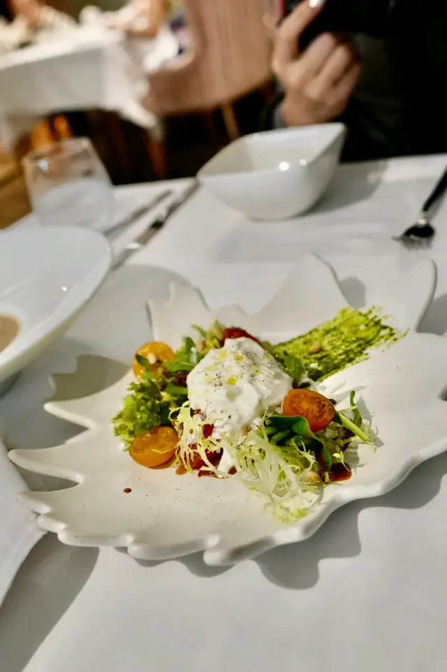 簡單卻驚喜——軟綿綿的芝士切開流出濃郁奶漿,酸甜番茄仔爆汁剛好中和膩感,松子脆脆地撒落青醬上,清新開胃👍🏻