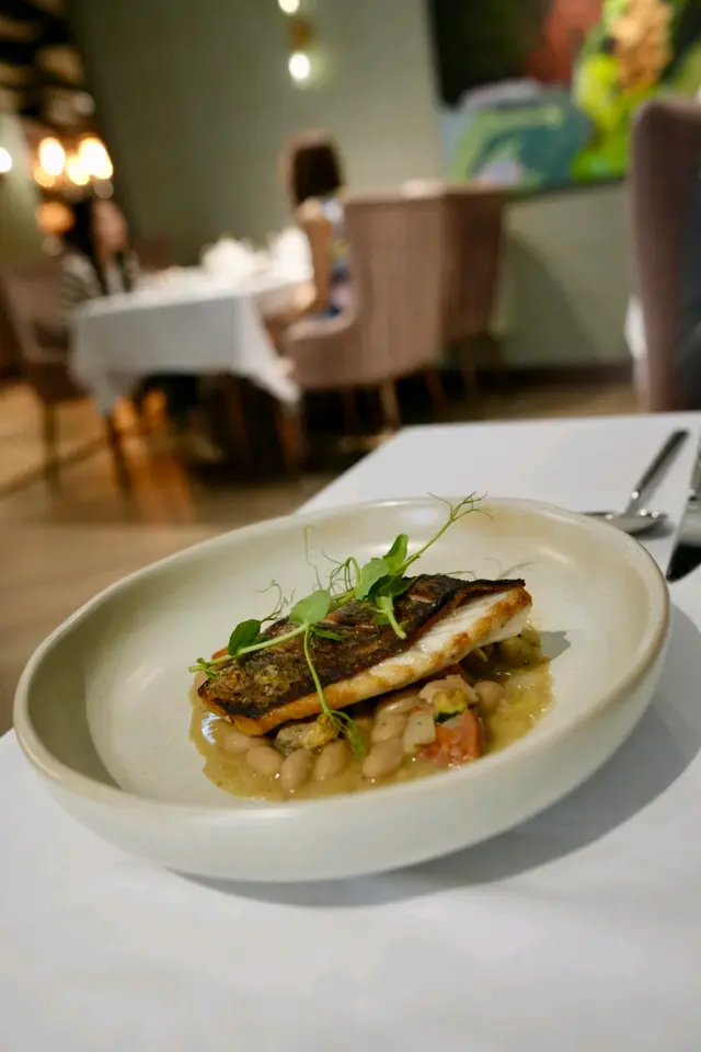 主菜🐠雪魚魚背煎出細密網紋,焦香邊緣帶住 海鹽結晶嘅微閃,咬落外脆內嫩得驚人👍🏻