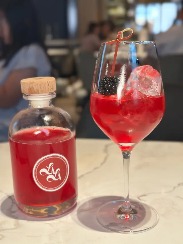 透明酒杯裡漂浮著黃瓜薄片,青蘋果+薄荷的香氣先聲奪人,自製Garden利口酒帶來雨後花園般的清新🥒 最絕是附贈的氣泡水 自己調節濃度
