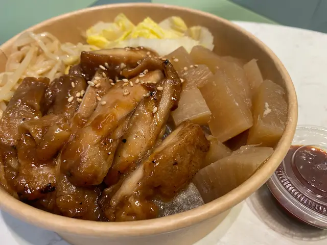 點了他們的韓式拌飯套餐,點了飯卷的我決定將拌飯改為粉絲,味道同樣有驚喜,他們每一份配菜例如蘿蔔和芽菜都帶有濃烈的韓式調味,另外雞扒肉質嫩滑,配搭他們的蒲燒醬汁和辣醬,這個韓式拌粉絲同樣高質,我和同事都打算日後午餐再過來回味一下