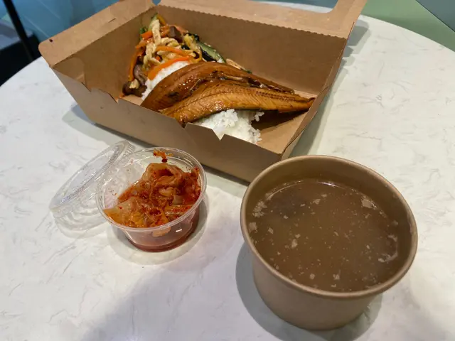 蒲燒秋刀魚套餐,先說賣相已經令人食慾大增,而且更附送泡菜和熱湯,性價比非常高,秋刀魚肉質結實,配搭蒲燒醬汁非常適合配搭白飯,另外不得不提他們的配菜是用不同蔬菜香炒而成,非常有誠意,總括來說對這間韓式小店非常滿意,絕對會再支持,加油💪🏻