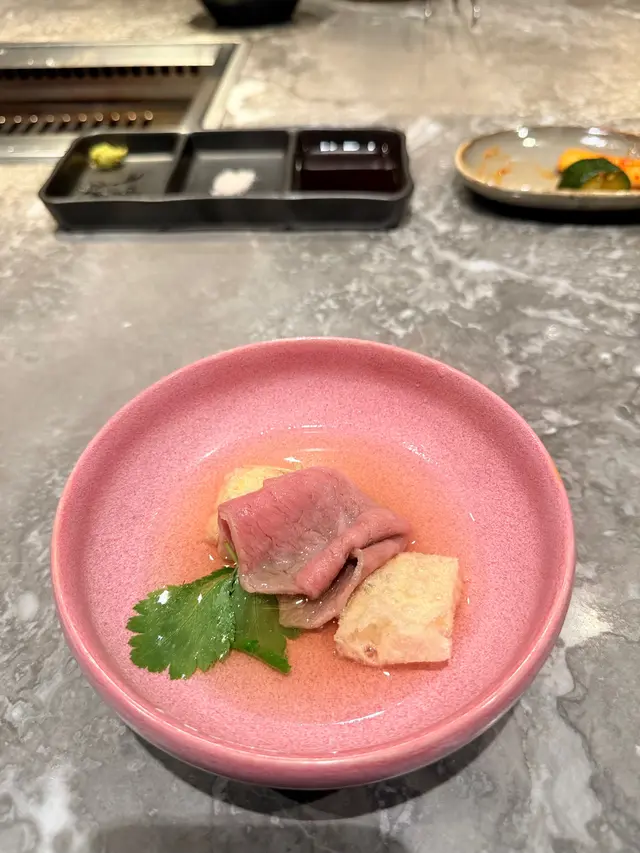 𓌉◯𓇋 肉眼鰹魚湯shabushabu - 先以鰹魚湯浸和牛肉眼至三分熟,再在上菜前淋湯至半熟,肉質鮮嫩,中和了燒肉後嘅油膩感