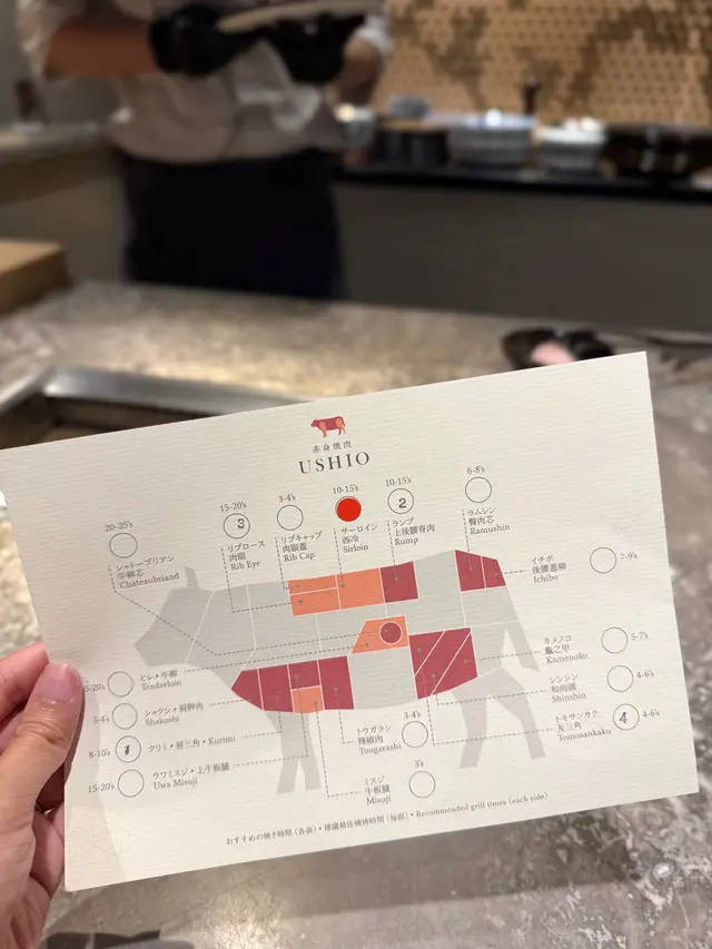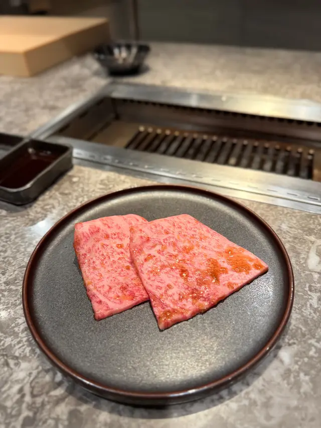 𓌉◯𓇋 鹽燒及汁燒稀少部位燒肉 - 主廚精選三款不同和牛部位,當晚品嘗左肩三角、上後腰脊肉、友三角,餐廳仲貼心附上位置圖,各個部位各有特色,其中個人最愛友三角,為後腿內側呈三角形嘅肉,兼具柔嫩口感同濃郁嘅牛肉風味