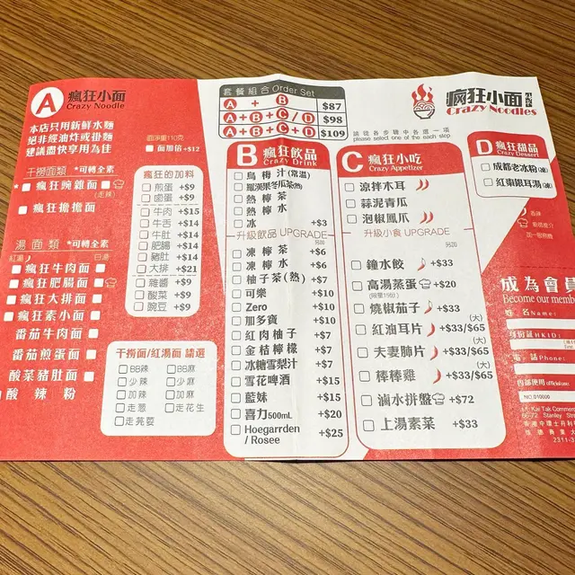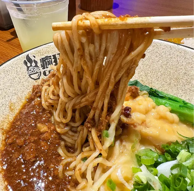 位置喺春回堂涼茶隔離商業大廈1樓,下晝2點過咗放飯繁忙時間比較少客,地方算大,枱頭仲有用緊隔板👀見餐單推薦乾撈豌雜麵同肥腸面,掙扎咗陣最後決定食「瘋狂豌雜麵」,未食過,試吓😙BB辣,麵上主角係豌豆同雜醬肉末,雜醬味道好濃,鹹香中帶少少辣,入口綿沙,豌豆清甜剛好降低重鹹嘅雜醬;麵條掛湯力強,將雜醬、豌豆、蔥花、花生、榨菜粒撈勻後口味豐富;「蒜泥青瓜」爽脆入味🥒「成都老涼粉」有花生芝麻提子乾山楂粒,拌
