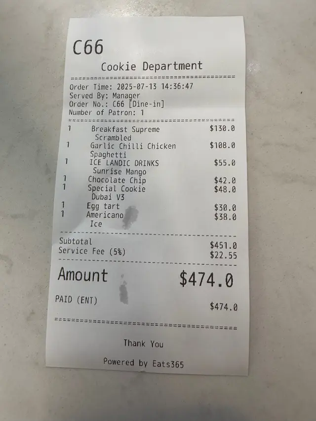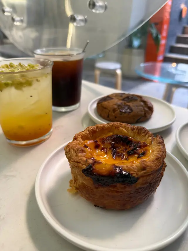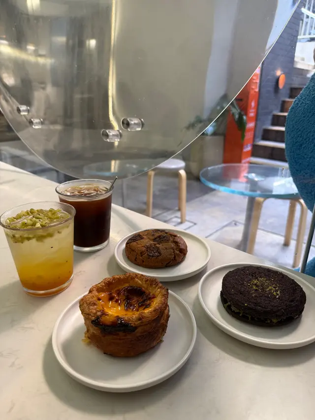 食完主菜,當然要試吓佢哋嘅招牌曲奇! Chocolate Chip經典之選,外脆內軟,朱古力粒粒爆漿,甜而不膩。特別推介 杜拜開心果曲奇,開心果味都幾濃!另外,佢哋嘅蛋撻比平時見嘅大個,撻皮酥脆,蛋餡香滑,蛋香十足,熱辣辣食真係無得輸!