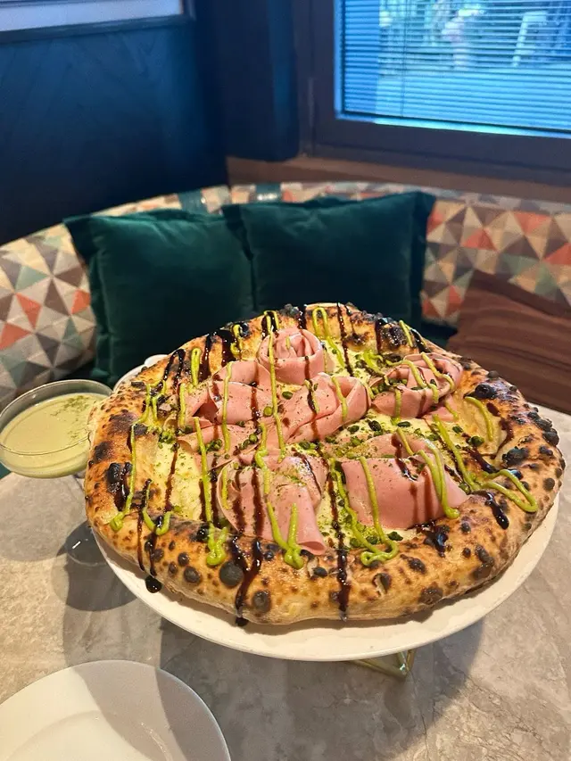 Testarossa ~打破對傳統pizza嘅印象,每一口都帶開心果嘅甜味超幸福,果香氣和奶酪的奶香味也太搭了,仲有可愛嘅火腿小花花,好睇又好食😬