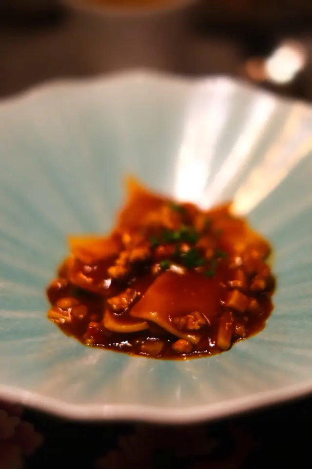 頭盤「甜椒醬蟶子皇」好清新,上枱就有無盡的仙氣,蟶子夠肥美,甜椒醬帶點微辣同酸甜,食落好開胃。