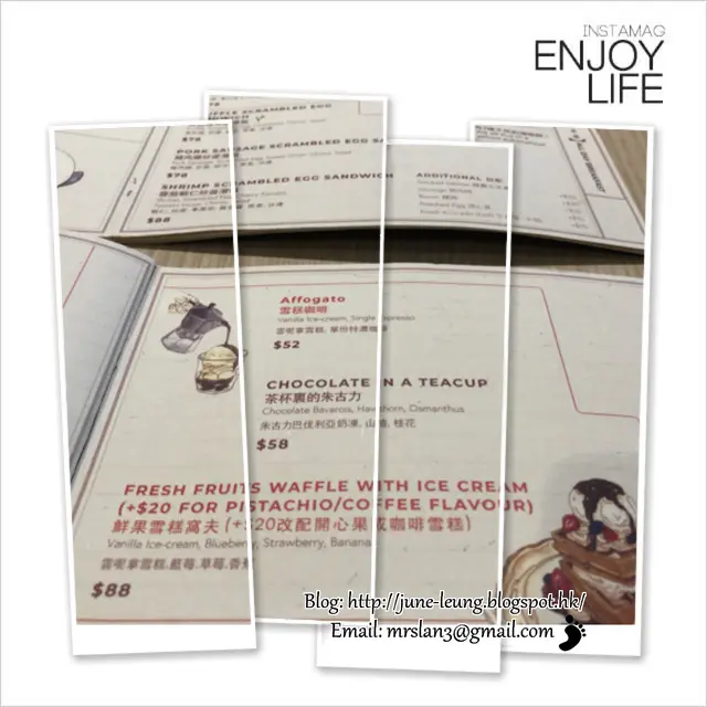 我倆點了一個豬肉腸炒蛋潛艇 ($78) 及 鮮果雪糕窩夫 ($88) !