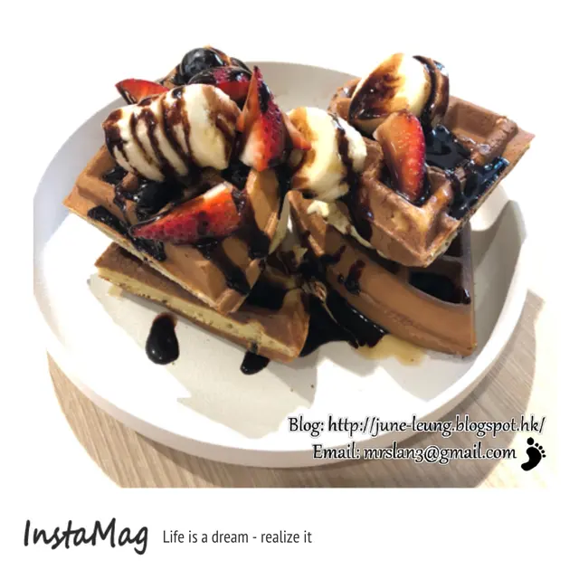 至於味道方面, 窩夫入口算鬆軟, 但中間部份帶點空虛, 欠缺厚實實感, 不會太甜, 上面也灑有不少水果, 配以雪糕同吃, 也挺好味的!