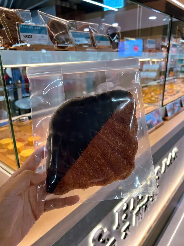 朱古力扁可頌好大塊,外形扁平大塊,口感酥脆又鬆化,朱古力苦中帶甜。