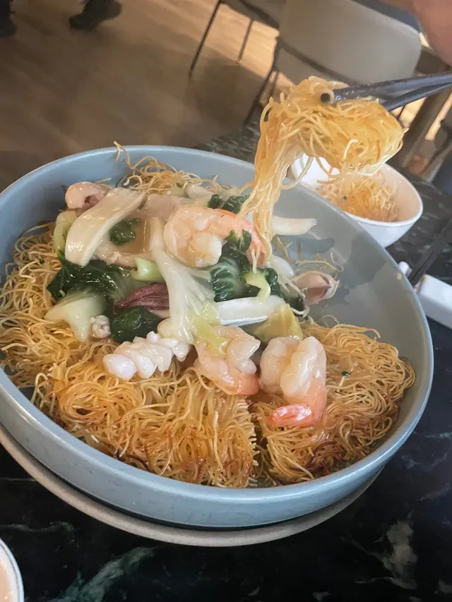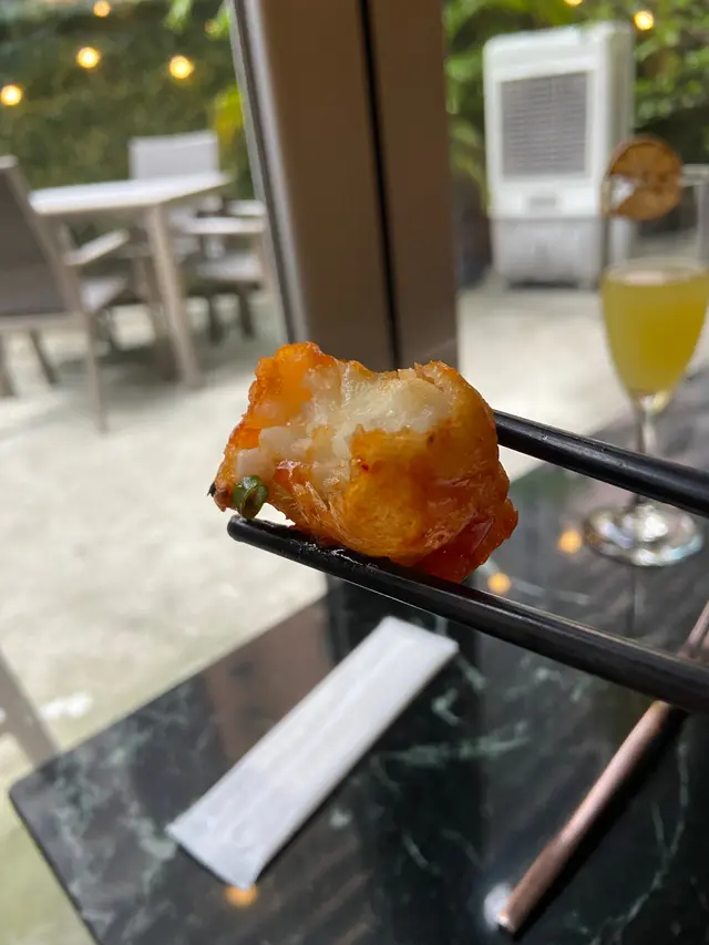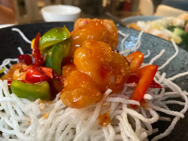 新鮮的彈牙蝦球與清新的香椒完美搭配,再加上辣椒的調味,帶來一種獨特的風味體驗。這道菜結合了香甜和微辣的口感