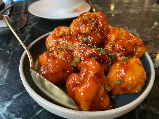 趣怪嘅名字,千祈唔好以為係雞肉菜式。佢係一道素菜,它以炸粉麵團包裹著椰菜花,炸至香脆可口,搭配酸甜醬汁。口感有點像咕嚕肉,外層酥脆,內裡的椰菜花充滿濃郁的香氣。這道菜結合了甜、酸、辣的風味