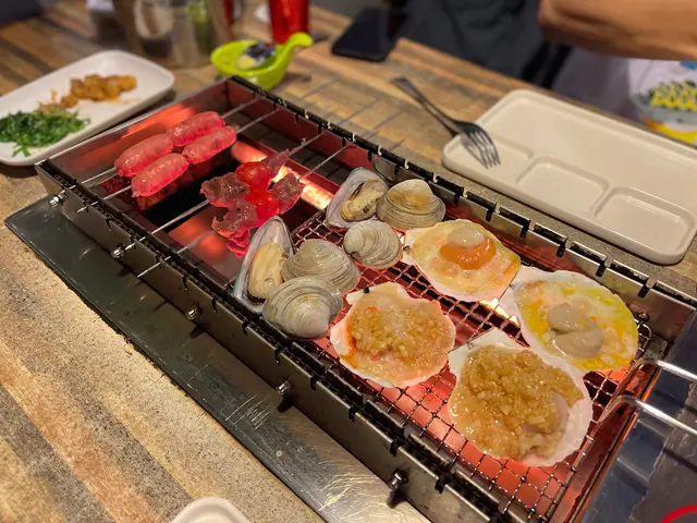 蜆同青口味道鮮美,帆立貝鮮嫩多汁;豬腩肉煎得香脆,牛柳粒嫩滑多汁,牛肋條同牛脷口感豐富;台灣腸同紅腸鹹香惹味,菠蘿燒到啱啱好,甜甜哋好開胃;多春魚外脆內嫩,棉花糖燒完外脆內軟,蒜蓉包香氣十足。
