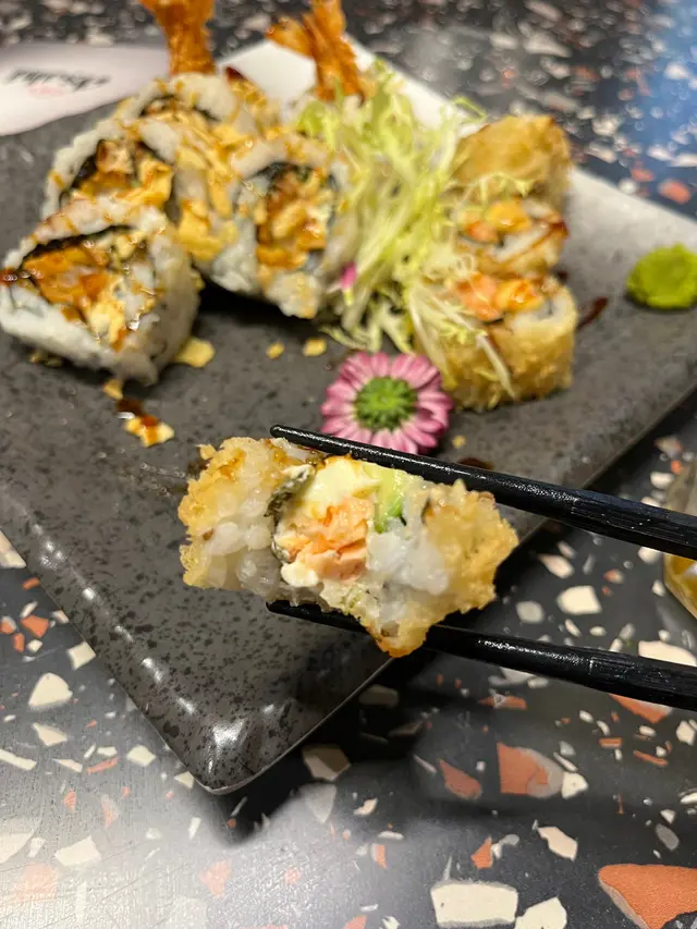 呢個卷物外邊炸過 令圍邊既飯有煙靭感覺😍三文魚同牛油果係絕配 👍🏻👍🏻