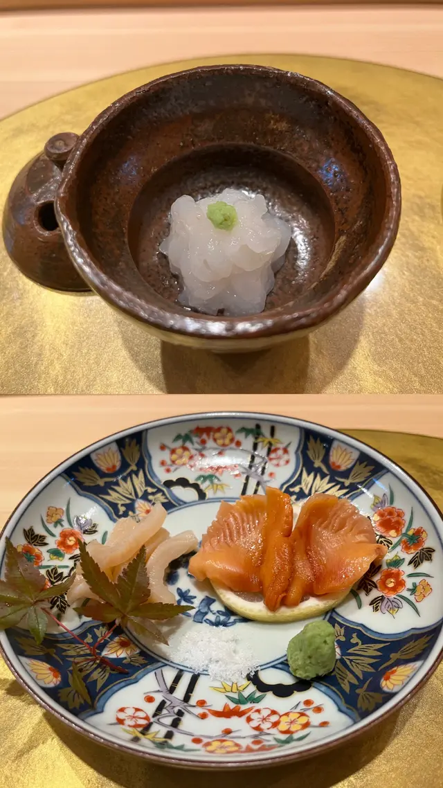 前菜為我們開始了這場美食之旅。芝海老的鮮嫩彈牙與鴨胸的香濃完美融合,帶給了我們一種口感上的享受。蝶魚漬物和鮮甜栗子則增添了豐富的層次感,而銀杏的清爽口感則平衡了整個菜式的風味。