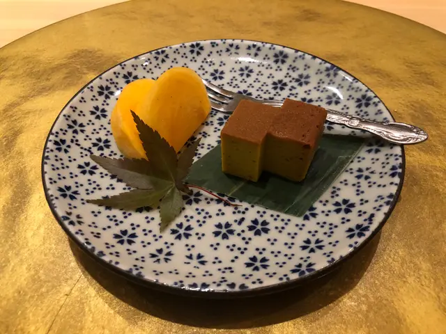最後,甜品日本柿南瓜蛋糕為這場盛宴劃下了完美的句點。柿子的甜美與南瓜的濃郁相得益彰,蛋糕的口感綿密細膩,讓人感受到了師傅對於甜品的獨特創意。