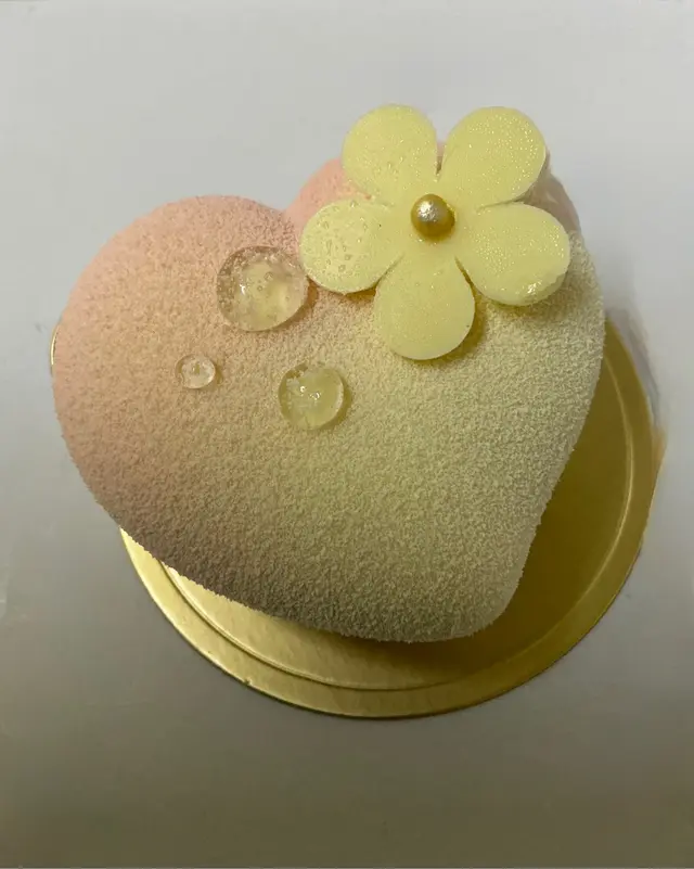 切落去,心心入面有荔枝mousse 混合raspberry 奶油, 酸酸甜甜,配上杏仁蛋糕墊底。味道幾豐富,配上底層蛋糕一切食, 唔會太膩。