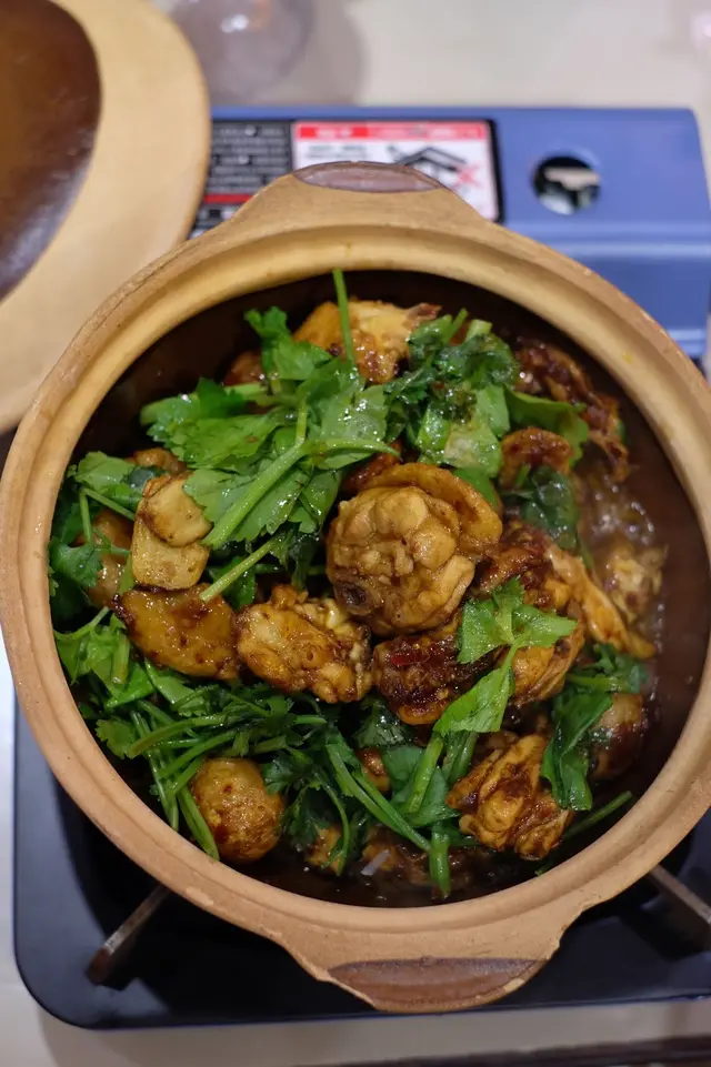 當我發現這間餐廳的時候,係一位大哥J先生告訴我,佢大讚三樣嘢好食,雞煲,烤魚和炒飯。