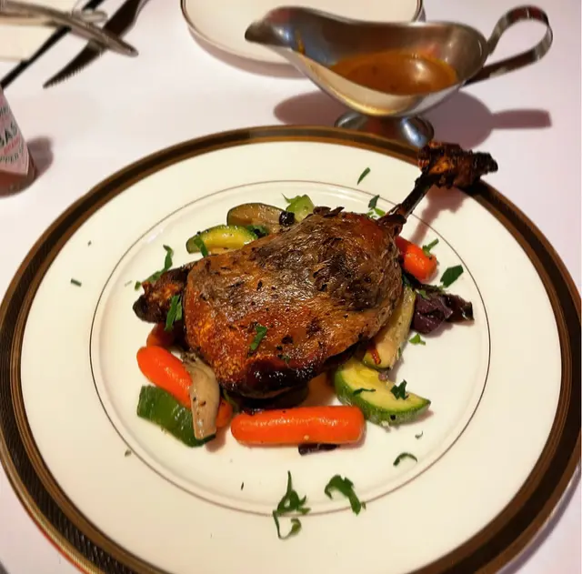 隻鴨髀算幾多肉幾香,外皮帶脆,配埋佢嘅黑椒汁更惹味😌除咗啲雜菜之外其實鴨髀下面仲有啲薯蓉添🥔