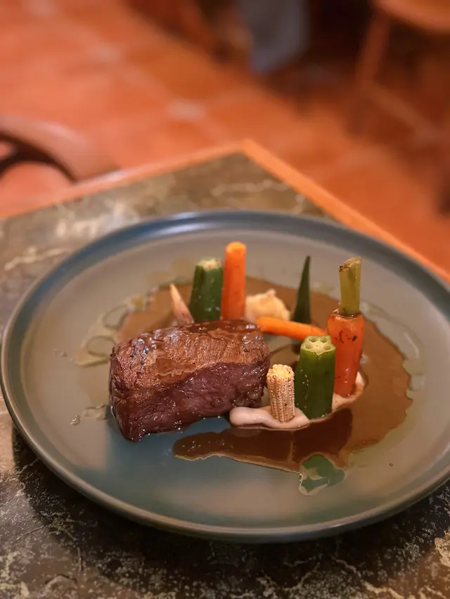 旁邊配有馬鈴薯泥•迷你甘荀•小栗米•秋葵