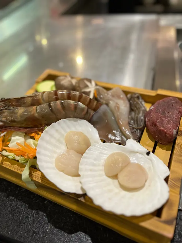 以其新鮮食材和現場鐵板燒烹調體驗。鐵板海鮮套餐(二人前,$728)環境:餐廳位於九龍城核心地段,設有開放式鐵板燒檯,食客可近距離觀看師傅現場烹調,增添互動感和趣味。環境整潔,氛圍輕鬆