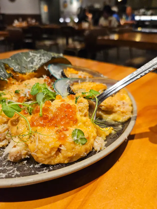 Risotto口感濃郁滑順,南瓜原隻上,店員話可以減輕油膩感,南瓜肉帶有微甜,蟹肉鮮嫩,三文魚籽爆裂清新,鹹蛋黃增添濃厚鹹香,米飯軟糯,每一口層次豐富。