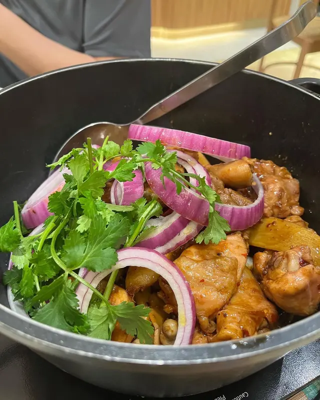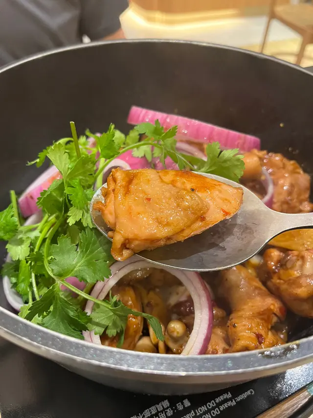 醬汁十分惹味,雞件既份量都好多,主要都係雞鎚雞脾肉,所以食落都幾嫩滑,同佢唔係煮熟左先攞出黎,真係成煲咁係電磁爐上一路煮,時間相對會耐啲,但可確保雞肉唔會過老,除咗雞件,裏面仲會有啲豬肚同菇片,索哂啲汁😆另外仲會有碟菜同兩碗白飯,咁嘅價錢真係超級抵食