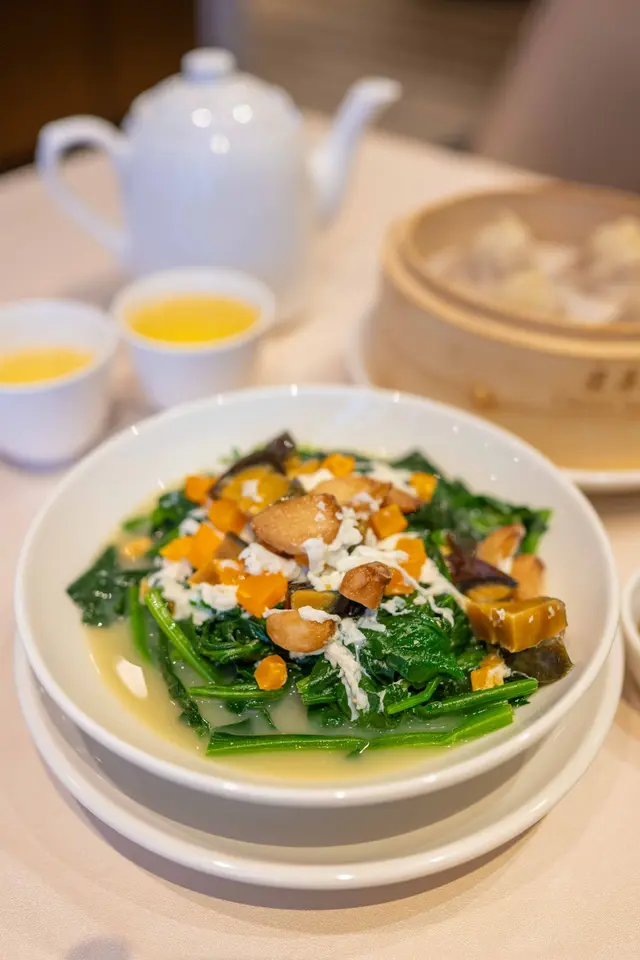清淡中帶有蛋香,蔬菜鮮嫩爽口,再加埋皮蛋,營養豐富又好味。