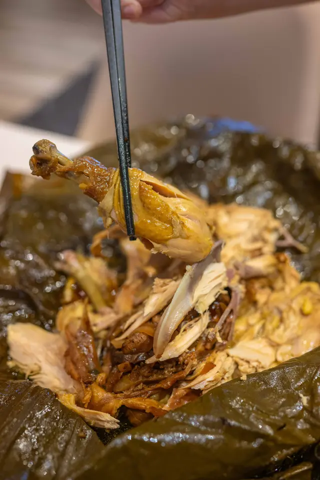店員打開荷葉嗰下超香!雞肉散發著淡淡的荷葉清香,雞裏面有冬菇同埋洋蔥,個味浸透入雞肉裏面。