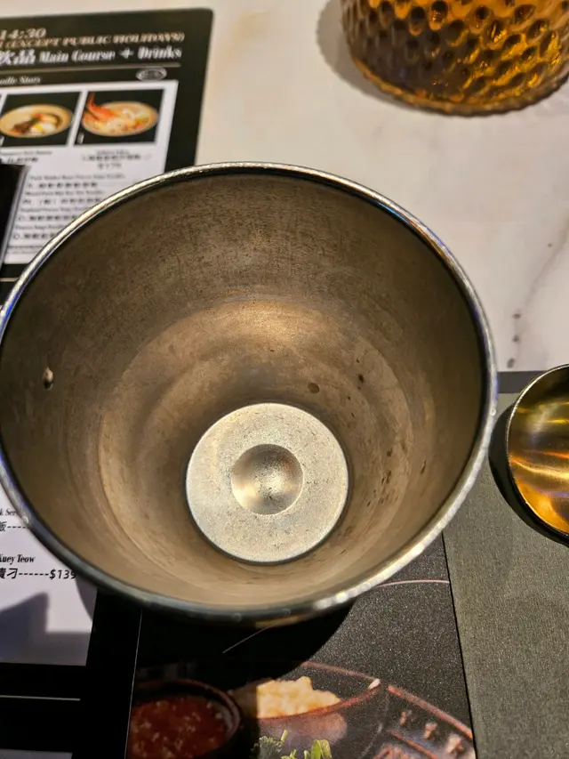 獲安排入座,見到放喺檯面嘅杯 有明顯污漬,同時見到