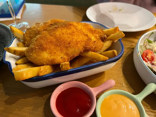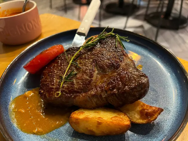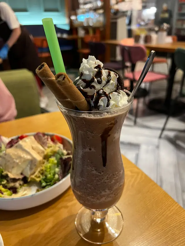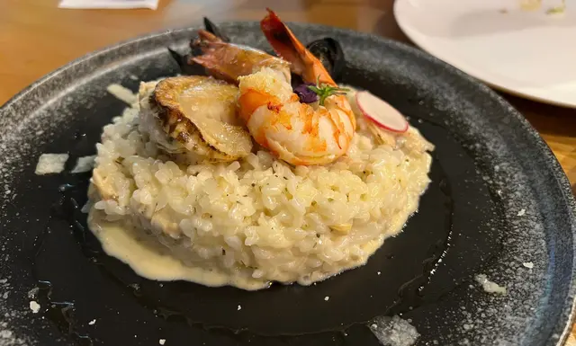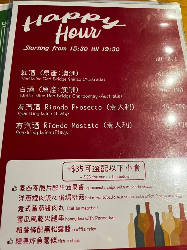 北角食肆有好多選擇,淨係北角海旁都有個較新嘅商場,有超市,火鍋店,西餐,台式,burger。今次嚟到商場對面,有間環境舒適仲有happy hour嘅西餐廳。Happy hour由3:30 pm - 7:30 pm有意大利prosecco, moscato, 澳洲紅酒白酒,小食有四五款揀,炸魚薯條金黃色幾吸引。嘆到晚餐時段,order 二人套餐,寫明不設加一,有餐湯,豆腐沙律,一份肉類,一份飯或意粉,甜品同飲品。分量大大碟,三個人share都夠晒數。肉眼扒煎得好香,真係做到medium rare。海鮮白汁意大利飯有帶子大蝦。朱古力milkshake 夠香濃,有whipping cream 高身大大杯。