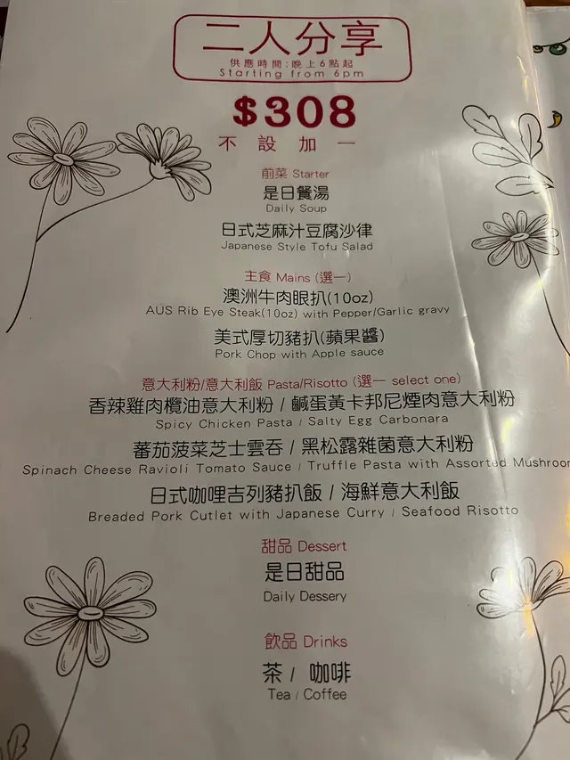 二人套餐不設加一