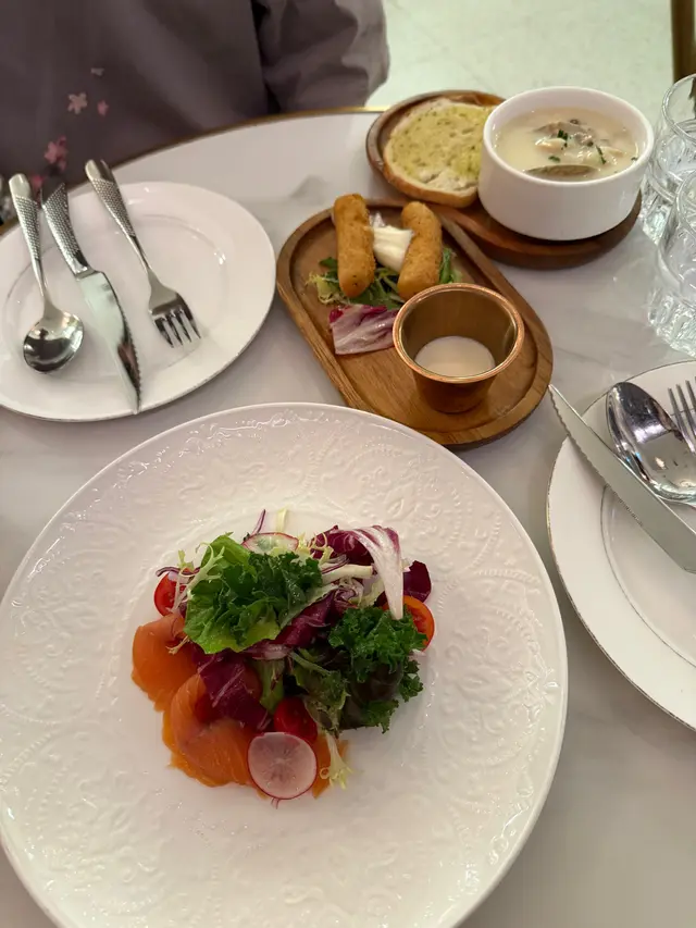 🥣 講下食物,頭盤加左蜆肉湯,飲落真係有鮮味,蜆肉唔會水腥,啖啖都有料。主菜方面,意大利飯酸酸地,魚扒煎得皮脆肉嫩,完全冇腥味,幾開胃。不過另一個主菜牛扒就略嫌唔夠Juicy,叫咗medium但偏熟,肉質實咗啲。如果牛扒可以再多汁啲就perfect啦!