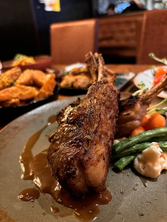 最後!終於到今晚嘅重頭戲!亦係我男友最最最期待嘅 **法式香草羊架**🐑!😍 知道佢係羊肉控,專登叫呢個俾佢試吓嘛!嘩,呢個真係冇得輸呀大佬!🤩 一上枱個擺盤已經好靚,羊架切開係超靚嘅粉紅色💖,熟度啱啱好 (應該係 medium rare),完全冇過火!食落口啲肉質超~~級軟腍,而且勁 juicy💦,一啲都唔韌,牙力唔好都絕對食到!面頭嗰層香草脆皮做得好好👍,又香又脆🌿,加埋羊肉本身獨特嘅羶香(係好食嗰隻羶味,唔係臭嗰隻!),成件事惹味到癲咗🤤!男友食到雙眼發光✨,係咁點頭話超好食,仲話呢個係今晚嘅No.1 🏆!見佢食得咁滿足,今餐飯都值回票價啦!呢個羊架冇懸念,一定係俾足 ❤️❤️❤️❤️❤️ 滿分!