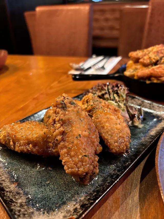 跟住嚟嘅係 Friday雞翼(柚子蜂蜜)🍗。望落去色澤好吸引,金黃金黃咁✨。食落個雞皮有啲脆口,入面嘅雞肉都幾嫩滑,唔會乾爭爭👍。重點係個柚子蜂蜜醬🍊🍯,味道酸酸甜甜,好清新開胃!個柚子味幾突出,唔會俾蜜糖味蓋過晒,食落一啲都唔覺得膩,反而可以中和返頭先食鹹蛋黃薯角嗰種滯嘅感覺。我同男友都覺得呢個雞翼味道平衡得幾好,幾有驚喜😋。