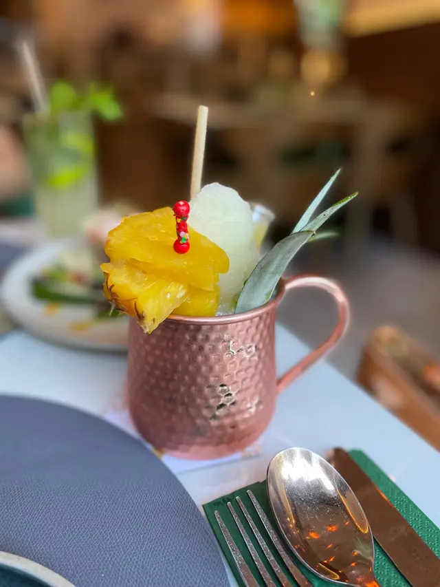這杯飲品主要由菠蘿、椰子和沙冰混合,不含酒精,菠蘿味道非常鮮甜,無論外型和味道皆出眾,是打卡必點選的飲料