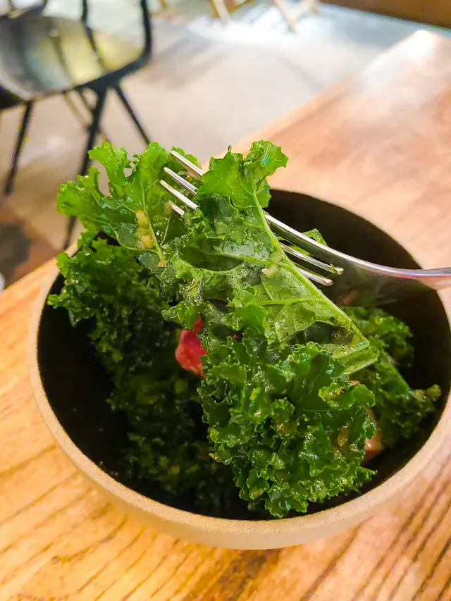底部還有些羽衣甘藍口感爽脆,沒有苦味,帶一點醋汁風味,感覺輕盈