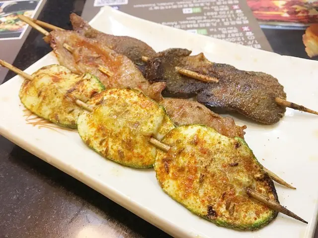 先來點串燒吃吃吧, 翠玉瓜燒得很好吃不過實在切得太薄了.