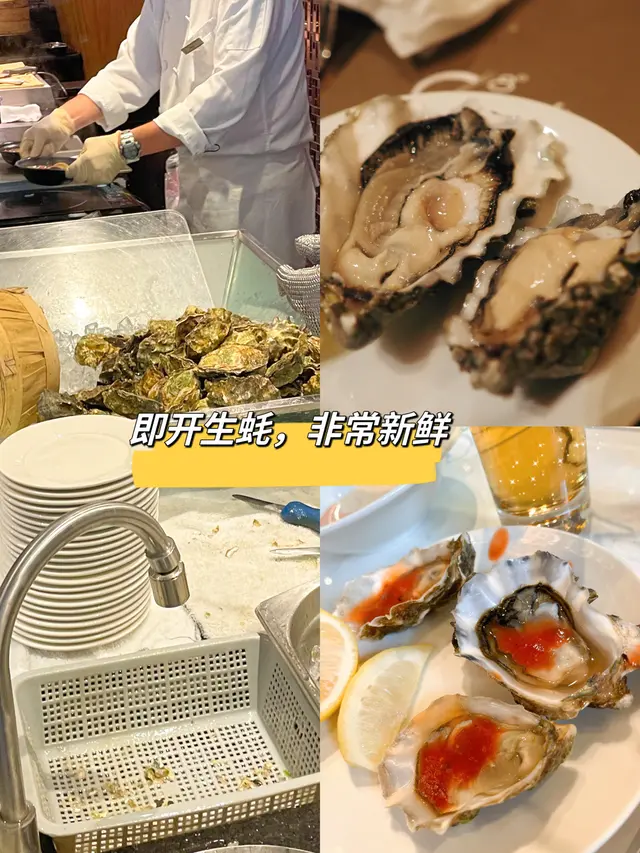 无论中午或晚上,都会无限量供应生蚝,鱼生,羊架,青口,烧牛肉,冰激凌,咖喱鸡,拿破仑蛋糕,我觉得但是吃生蚝已经能值回票价了!八度的生蚝非常新鲜,即叫即开,吃到爽~