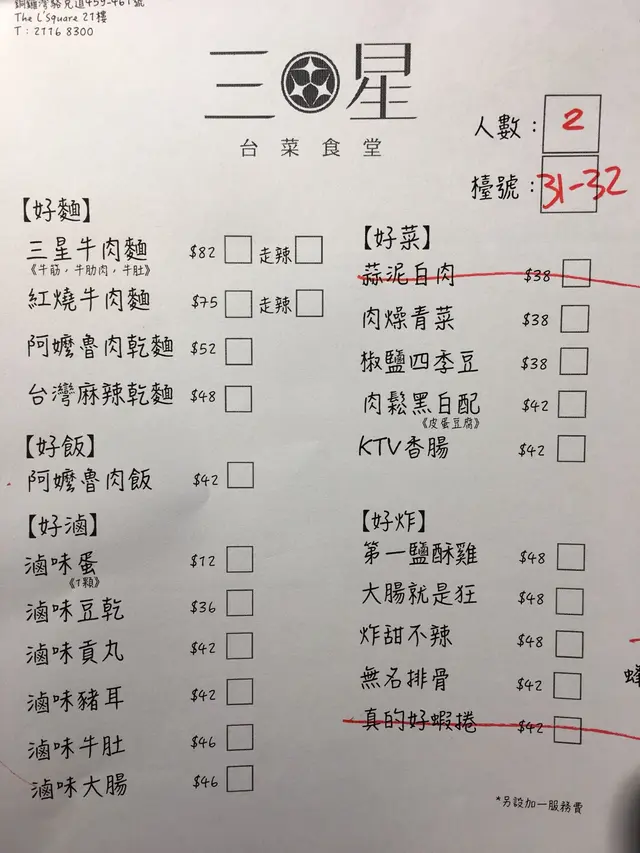 餐牌選擇唔算好多,有麵、飯、滷味、小食、炸物、台式飲品等,定價稍高,考慮到地段加上屬明星食堂,都理解。由於當日打風,蒜泥白肉、蝦捲未有供應,好在想食嘅都有呢